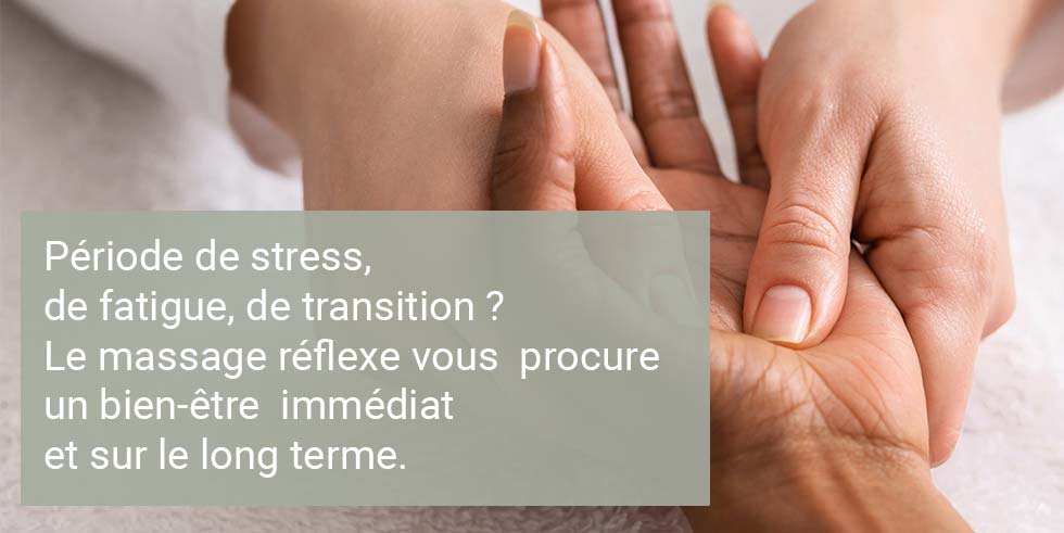 La Réflexologie, par des pressions cadencées, rythmées et répétitives, active des circuits neuro-réflexes. Elle favorise la libération d’endorphines, des substances naturelles aux effets apaisants et antalgiques, qui contribuent à un profond sentiment de bien-être.